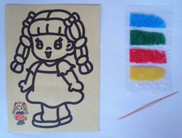 Balení obsahuje 1ks dřevěné rydlo, obrázek a 4 barvy písku.