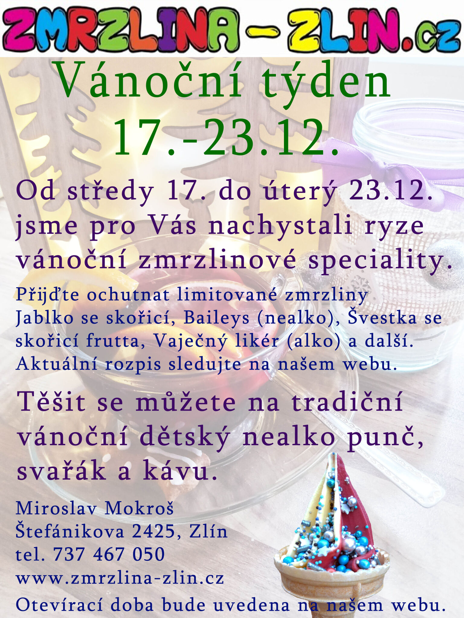 Prodej vybraného sortimentu ve stánku v běžné otevírací době. Kompletní sortiment a možnost objednání v našem E-SHOPU již od 1 ks při odběru ve stánku zmrzliny zdarma.